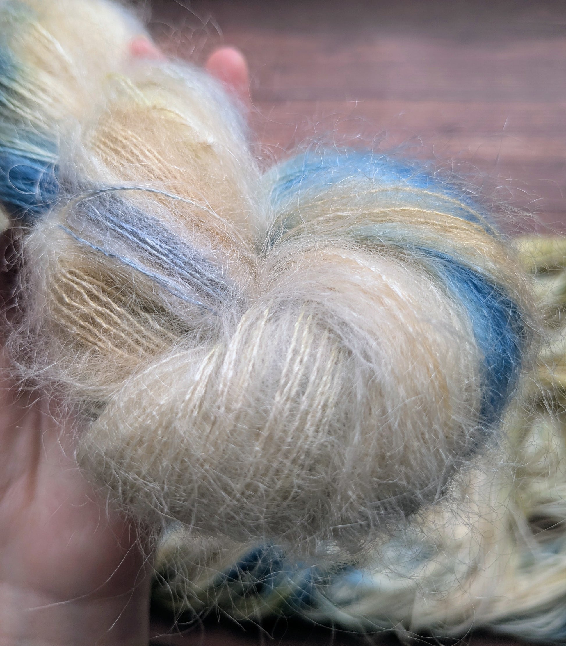Ce mois-ci je vous propose de redécouvrir une laine que certains d'entres vous connaissent bien et que je n'ai pas assez mis en valeur a mon gout : le mohair ! Le mohair est une fibre extraordinaire, douce, chaude, elle prend extrêmement bien la couleur et offre de jolis reflets grâce a son lustre naturel, c'est une laine que l'on peut aussi bien porter au coeur de l'hiver en la doublant sur elle-même ou avec un autre fil, mais également au printemps en le tricotant en simple pour des projets légers et vaporeux !