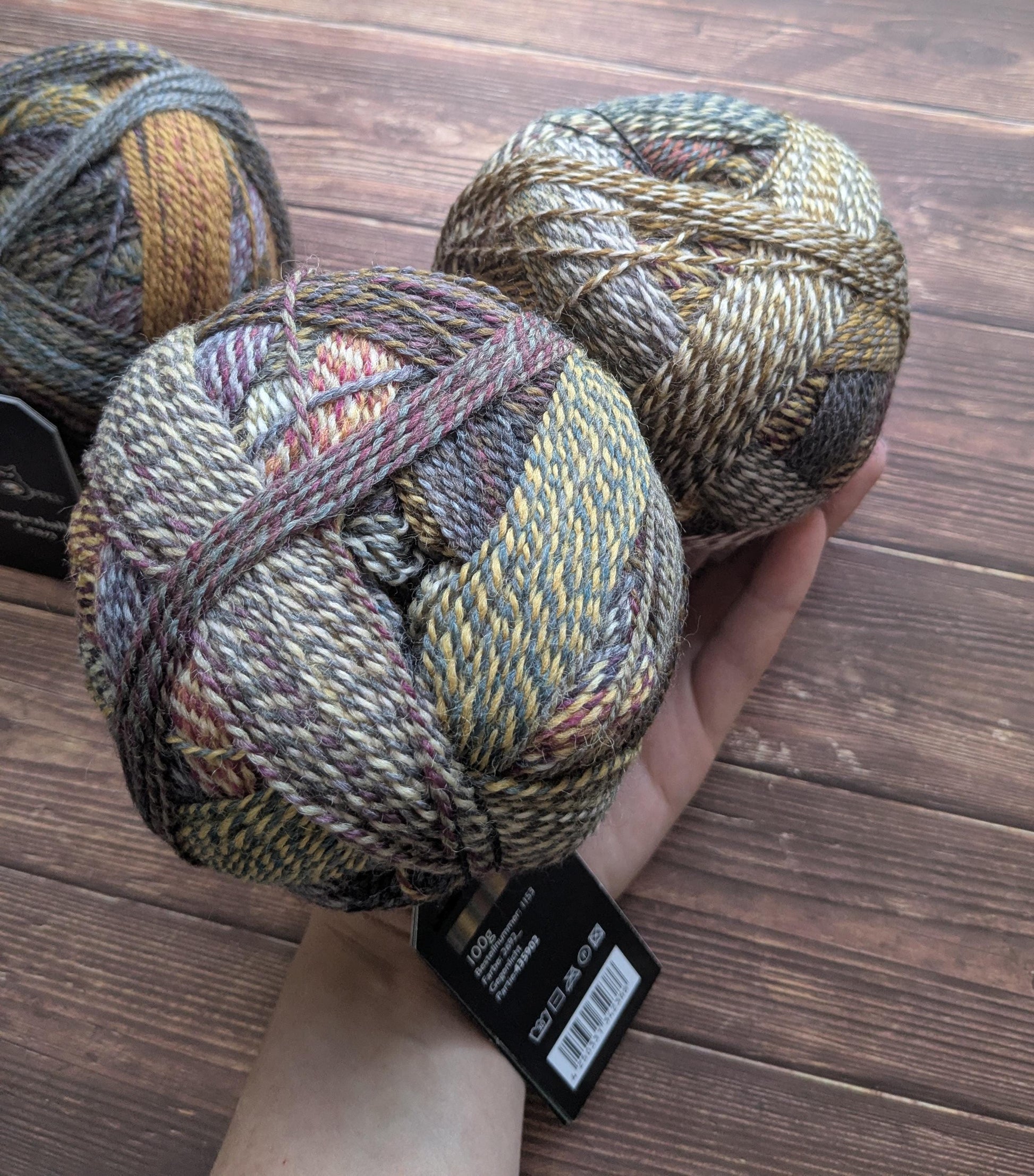 Le coloris Gegenlicht est un des nouveaux coloris de la cuvée 2025 ! C'est un coloris très automnal et moody comme on aime ! Le genre de couleurs qui sera parfait pour vos projets en jacquard et en mosaique avec de jolis motifs d'automne ! Cette couleur alterne des nuances de Ocre, beige, Marron, Prune, Gris, caramel...etc.