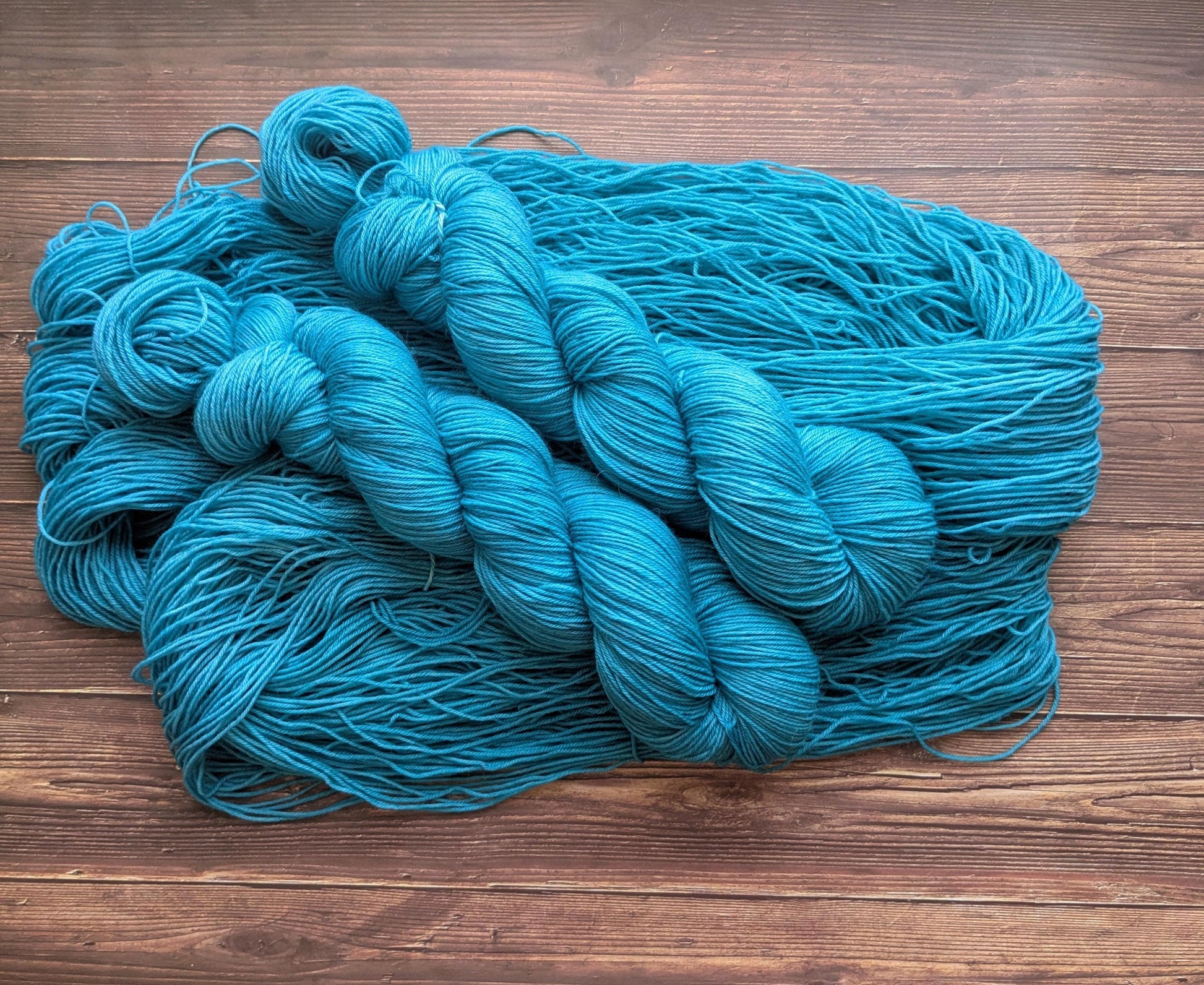 Chaque écheveau est unique est teint par mes soins. Les coloris peuvent donc varier d’un bain à l’autre et d’un écheveau à l’autre, je vous recommande d’alterner les écheveaux si vous voulez tricoter un gros projet. Il est possible que certaines couleurs dégorgent lors du premier lavage, dans ce cas il est recommandé d’ajouter un verre de vinaigre blanc et de laisser tremper quelques minutes.