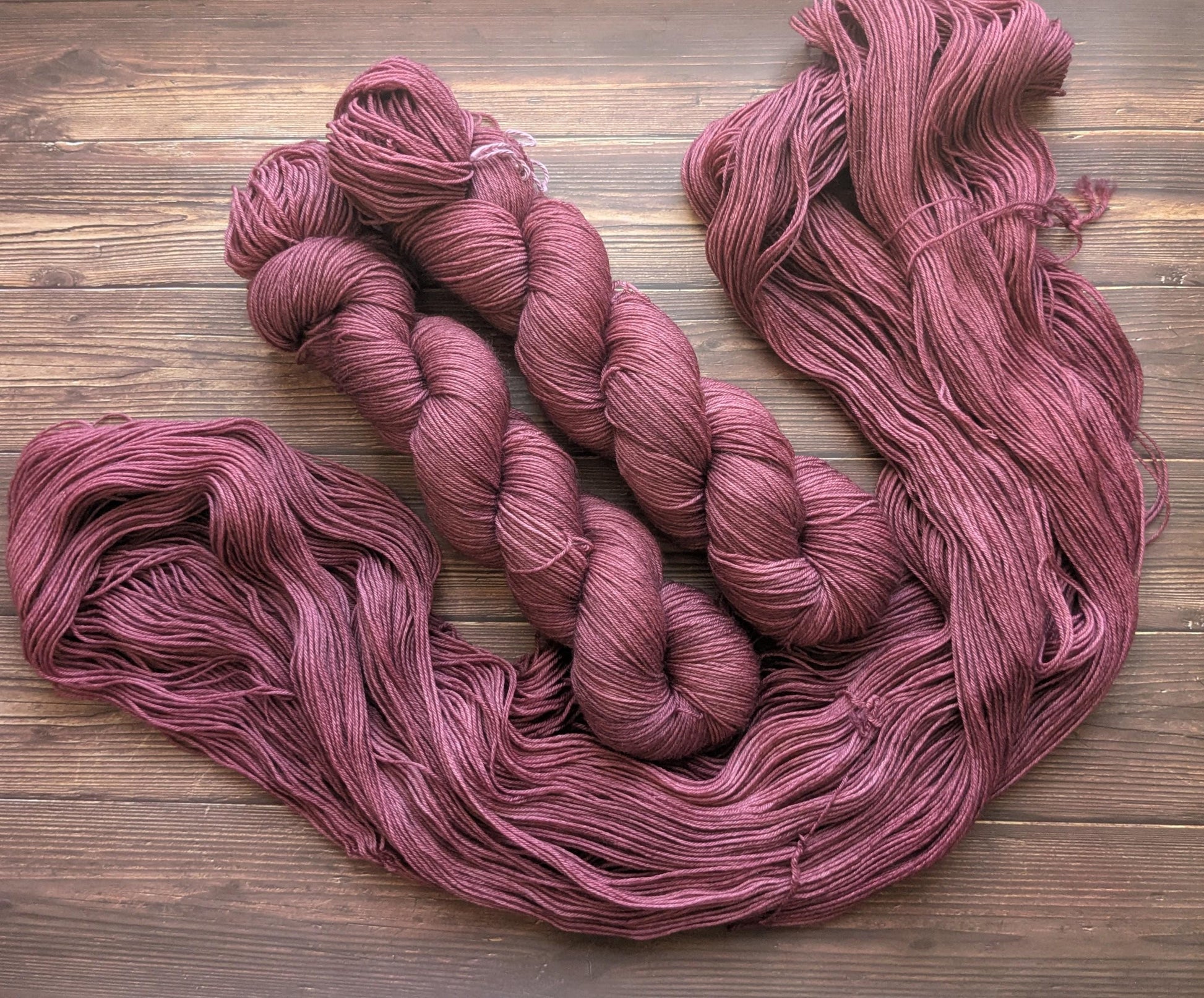Echeveau teint a la main avec des teintures acides eco-responsable et lavée avec une lessive écologique.